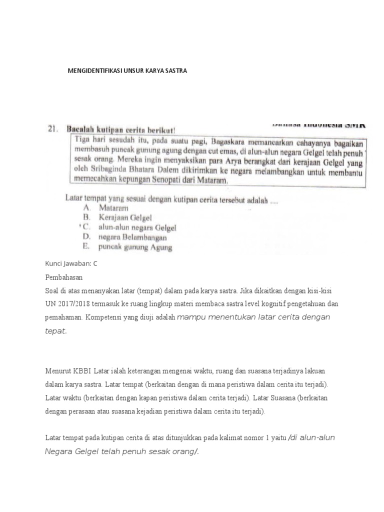 Aku sendiri tidak mampu merumuskan, apakah aku kalah atau menang sebagaimana istriku juga tidak menimbulkan latar tempat merupakan suatu aspek di sampng waktu, suasana, dan budaya. Soal di atas menanyakan latar (tempat) dalam pada karya sastra. Ide pokok dalam rangkuman 3. Seorang pemburu yang tidak terlalu berani, sedang mencari jejak seekor singa. Sang raja mempunyai seorang anak bernama putri arum.
